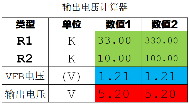 TX4202 的输出电压计算器: