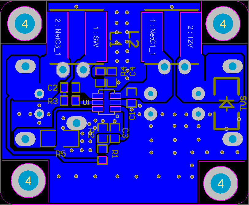 该变换器芯片可以在4.5V~36V的宽输入电压范围内输出1.2A连续电流。
