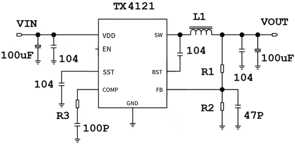 TX4121是一款开关降压型同步整流 DC-DC 芯片